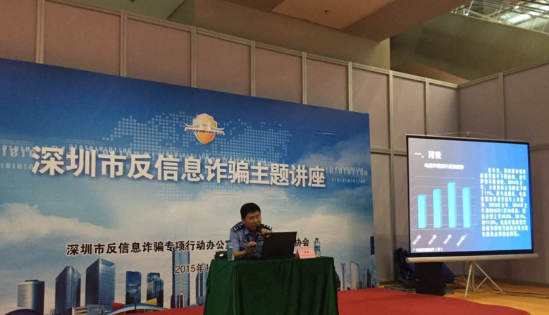 “針對(duì)信息詐騙犯罪高發(fā)的態(tài)勢(shì),今年8月1日,我市開(kāi)展以深圳市政法委書(shū)記李華楠同志為領(lǐng)導(dǎo)小組組長(zhǎng)的反信息詐騙犯罪專項(xiàng)行動(dòng),為期半年。此次專項(xiàng)行動(dòng)主要集中公安、銀行、通信、工商、網(wǎng)絡(luò)企業(yè)等專業(yè)力量共同打擊信息詐騙犯罪。經(jīng)過(guò)合成打擊、宣傳防范、警信警銀合作、對(duì)策研究等多個(gè)方面的工作,8月1日至10月25日,全市共立信息詐騙案件環(huán)比下降了13.9%;破信息詐騙案件280宗,環(huán)比260宗上升了7.7%;逮捕涉信息詐騙犯罪嫌疑人190人,環(huán)比149人上升了27.5%;打掉涉信息詐騙犯罪團(tuán)伙19個(gè),環(huán)比19個(gè)持平;凍結(jié)涉案賬戶203個(gè),資金3089.9萬(wàn)元?!鄙钲谑泄簿中虃删执箨?duì)長(zhǎng)朱海在講座上分享道。