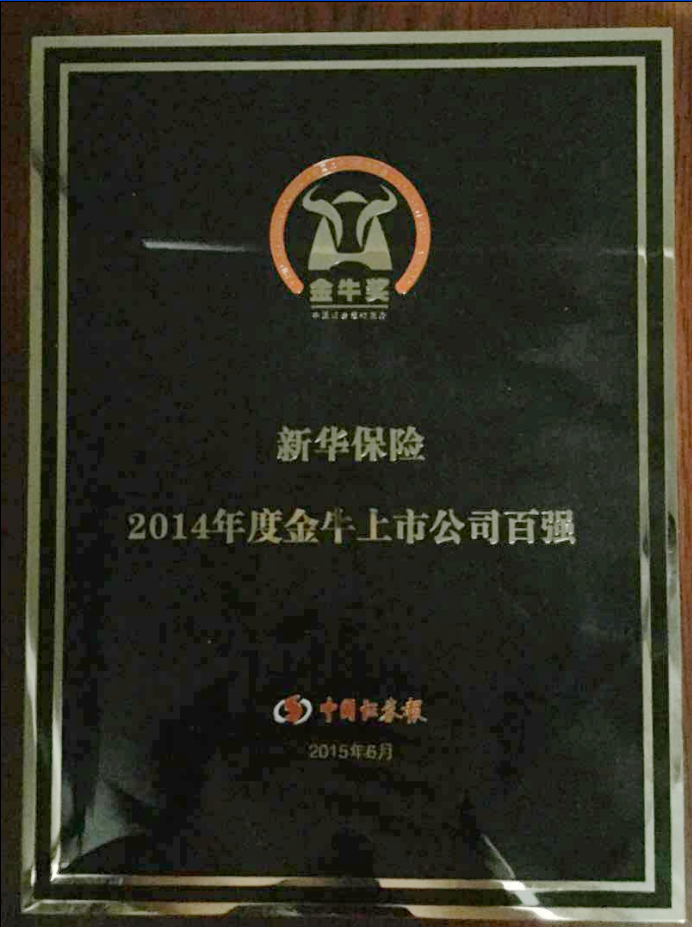 ?2015年6月,中國證券報(bào)第17屆(2014年度)上市公司金牛獎隆重揭曉,新華保險(xiǎn)榮獲“金牛上市公司百強(qiáng)”獎項(xiàng),這代表了資本市場以及社會各界對新華保險(xiǎn)在公司治理、信息披露、投資者關(guān)系等方面工作的高度認(rèn)可。