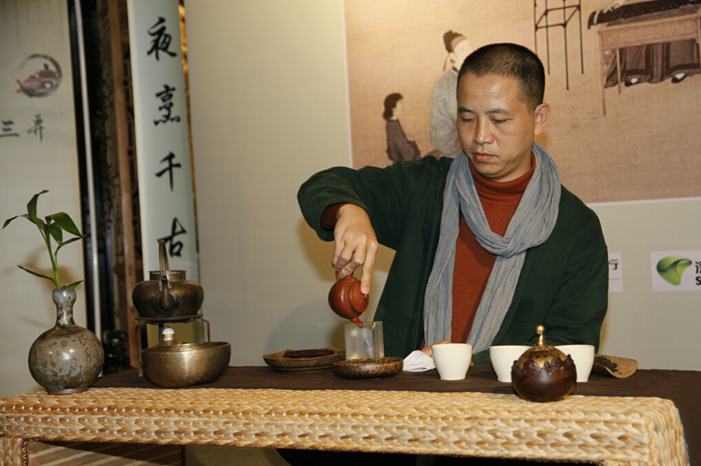 經(jīng)行禪茶創(chuàng)始人汪林生在進行禪茶表演