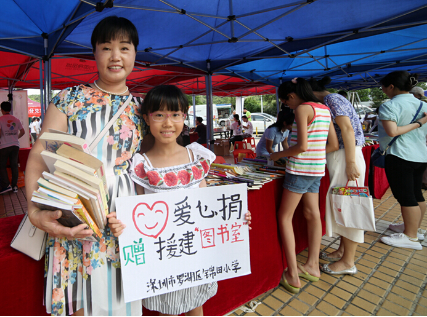 深圳市錦田小學(xué)的部分學(xué)生家長組團從羅湖趕至活動現(xiàn)場,他們帶來了200余本書,剛一擺出來,展區(qū)前就圍滿了人?!霸诹私獾竭@次愛心捐書活動后,我們特意從學(xué)生捐獻的書籍中精心挑選出200余本帶到現(xiàn)場。捐書活動與我們的教學(xué)理念很契合,我們愿意讓孩子積極參與,在他們幼小的心靈播下愛的種子,在成長的道路上時刻不忘幫助他人?!卞\田小學(xué)劉向陽副校長告訴記者。