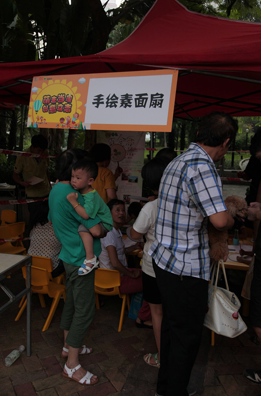 而在所有體驗(yàn)項(xiàng)目中,扇子彩繪成為人氣最旺的一個體驗(yàn)項(xiàng)目。從活動開始,一波又一波的小朋友涌進(jìn)扇子彩繪體驗(yàn)區(qū)。有的家長和孩子齊上陣,挑選好自己喜歡的扇面后,就在深圳國子監(jiān)文化傳播有限公司的專業(yè)老師指導(dǎo)下開始精心創(chuàng)作,充滿童趣的卡通畫、意境悠遠(yuǎn)的山水畫、栩栩如生的工筆畫,每一幅作品都引來眾多的圍觀贊嘆。