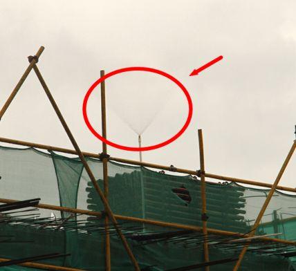 工地樓層外架上設(shè)有固定霧狀噴淋裝置?!?/p>