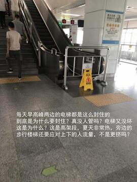 在7月2日的這條投訴中,有市民還指出了電梯停運(yùn)時(shí)間的不合理,稱木棉灣站的地鐵每逢工作日高峰期就“暫停使用”,到了平峰期就正常運(yùn)行。這也引起了其他一些乘客的質(zhì)疑。家住木棉灣站附近的李先生說(shuō):“非高峰時(shí)段電梯就能用,說(shuō)明電梯本身沒(méi)問(wèn)題,那為什么不開(kāi)放給人多的時(shí)候用呢?”市民張先生則認(rèn)為,地鐵方面可能是為了降低維護(hù)成本,“怕人多踩壞了,要花錢花時(shí)間修唄”。但也有市民猜測(cè)電梯停運(yùn)或有安全方面的考慮。“畢竟不會(huì)無(wú)緣無(wú)故就停了吧,可能是考慮到高峰客流量多,所以關(guān)掉不用的?!倍排勘硎?,可以接受因?yàn)榘踩珕?wèn)題而采取的停運(yùn)措施,“走走樓梯也沒(méi)有什么。