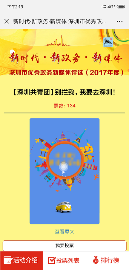 作為中國(guó)"最互聯(lián)網(wǎng)城市〃,深圳近年來(lái)大力建 設(shè)政務(wù)新媒體平臺(tái)矩陣,不斷建立健全工作機(jī)制,搭 建起為市民服務(wù)的新渠道、新平臺(tái),涌現(xiàn)出許多優(yōu)秀 的政務(wù)新媒體。廣大市民網(wǎng)友,有哪些政務(wù)微信么, 讓你"欲罷不能〃,有哪位小編讓你〃刻骨銘心〃, 有哪些作品讓你"秒轉(zhuǎn)秒贊"?請(qǐng)為他們投上寶貴一 票吧!本次投票活動(dòng)作為"新時(shí)代新政務(wù)備體"—— 深圳市優(yōu)秀政務(wù)新媒體評(píng)選(2017年度)活動(dòng)的重要 組成部分,其結(jié)果將作為專(zhuān)家評(píng)審類(lèi)獎(jiǎng)項(xiàng)評(píng)選的重要 參考細(xì),權(quán)重占比50%。