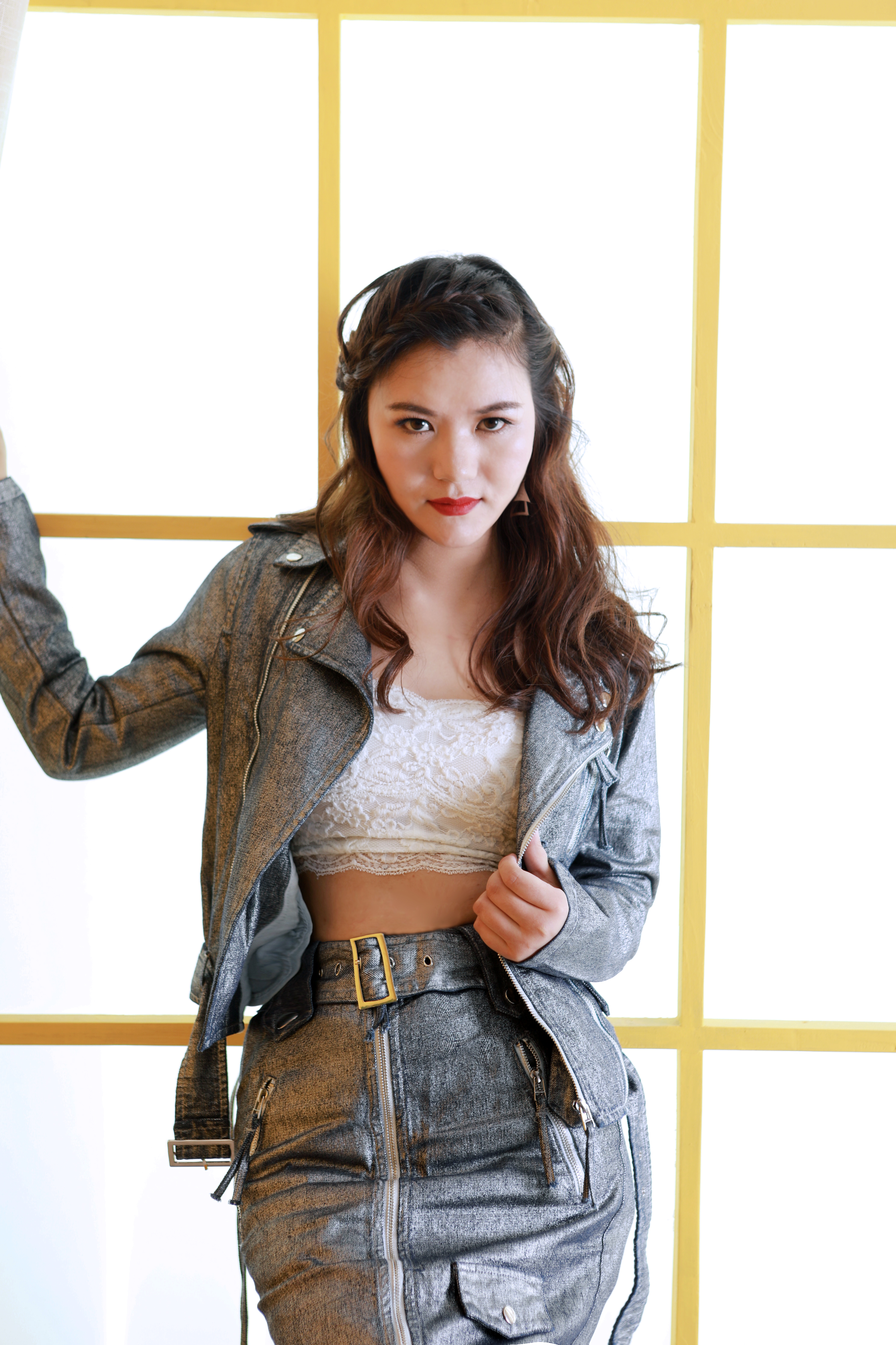 服裝師給小田田選擇了一套金屬色澤的牛仔夾克&半裙,金屬材質(zhì)和夾克讓牛仔更顯霸氣,溫柔的半裙又調(diào)和了剛硬感,剛中帶柔的感覺,讓剛才甜甜的小田田又御姐了起來呢。