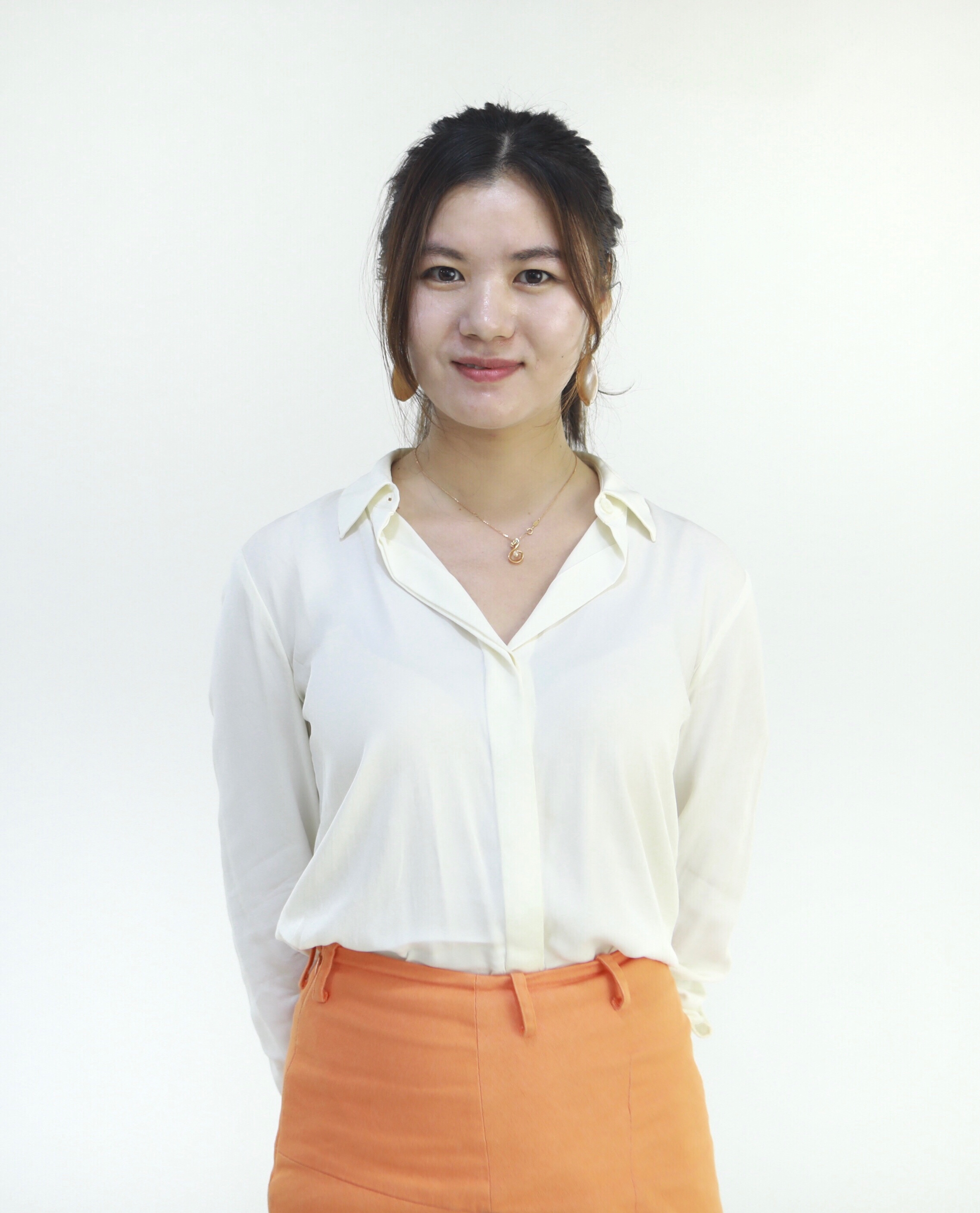 改造前:標(biāo)準(zhǔn)版馬尾 標(biāo)準(zhǔn)版白色雪紡襯衫 標(biāo)準(zhǔn)版平底鞋
