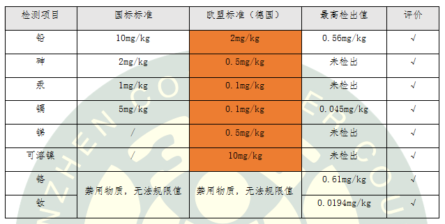 檢測結(jié)果顯示:對于有限量要求的重金屬,8款氣墊粉底均滿足國標和歐盟最嚴格的限值要求;對于沒有限量要求的重金屬鉻和釹,也滿足在正常的,或合理預見的使用條件下不對人會體造成危害。