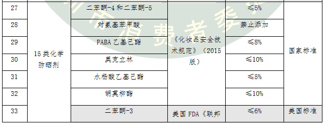 表4.15類化學防曬劑標準要求比對及評價結(jié)果