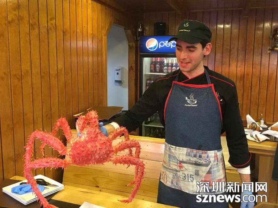 深圳新聞網(wǎng)訊 蜘蛛蟹(又名皇帝蟹)只產(chǎn)于南北兩極冰冷的海洋中,因?yàn)榘藯l腿特長(zhǎng),外觀(guān)形似蜘蛛,而且觸角也比普通螃蟹多,所以被稱(chēng)為蜘蛛蟹,大個(gè)的重量可達(dá)5公斤以上。智利政府規(guī)定,小于1.5公斤的不許捕撈。