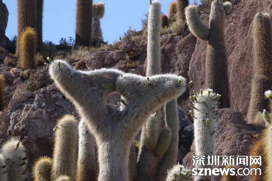 深圳新聞網(wǎng)訊 烏尤尼鹽沼中,有一個孤立的小山頭,猶如瀚海中的小島。島上長滿巨大的仙人柱,據(jù)說有的已經(jīng)生長了上千年。這種形狀各異、耐鹽堿、耐干旱的熱帶植物豐富了鹽沼的風(fēng)光,構(gòu)成絕無僅有的世界奇觀。 李仁奇 攝