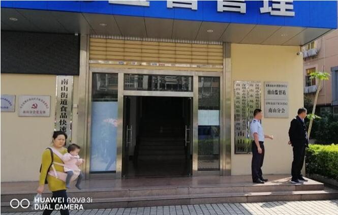 隨后,市民前往位于南山市場附近的南山食品藥品監(jiān)督管理局南山所,該地點還顯示有南山街道食品快速檢測室,然而市民檢測卻被阻攔。