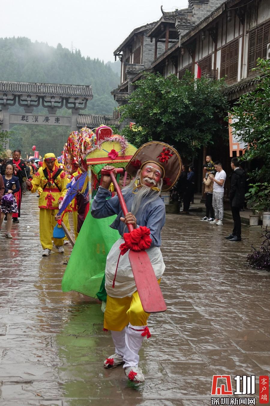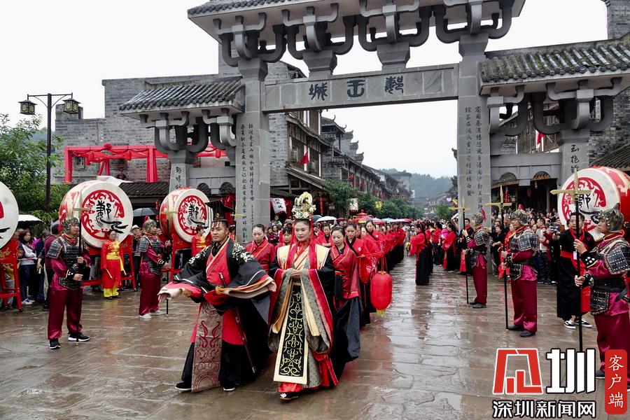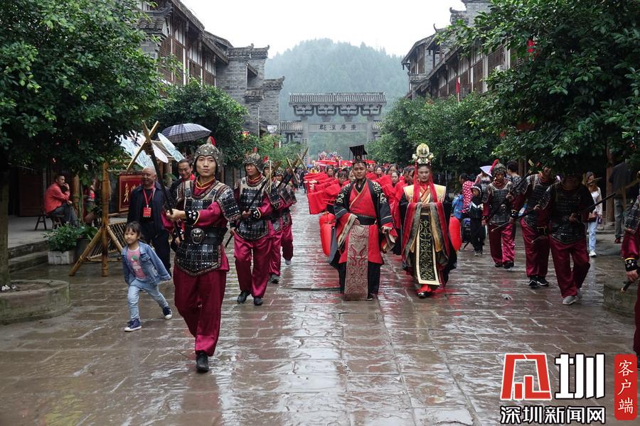 郪江古鎮(zhèn)古典風(fēng)格的迎賓儀式和民俗風(fēng)情展示。李仁奇攝