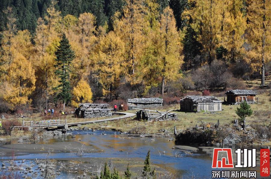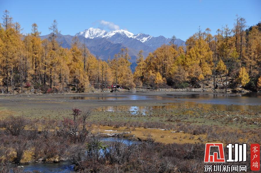溝里有大片的落葉松、杜鵑和云杉林,雪山、海子、濕地、河流等景觀應(yīng)有盡有,唯獨(dú)沒有公路,只能沿木棧道徒步游覽。李仁奇攝