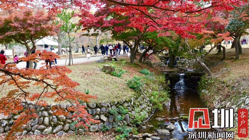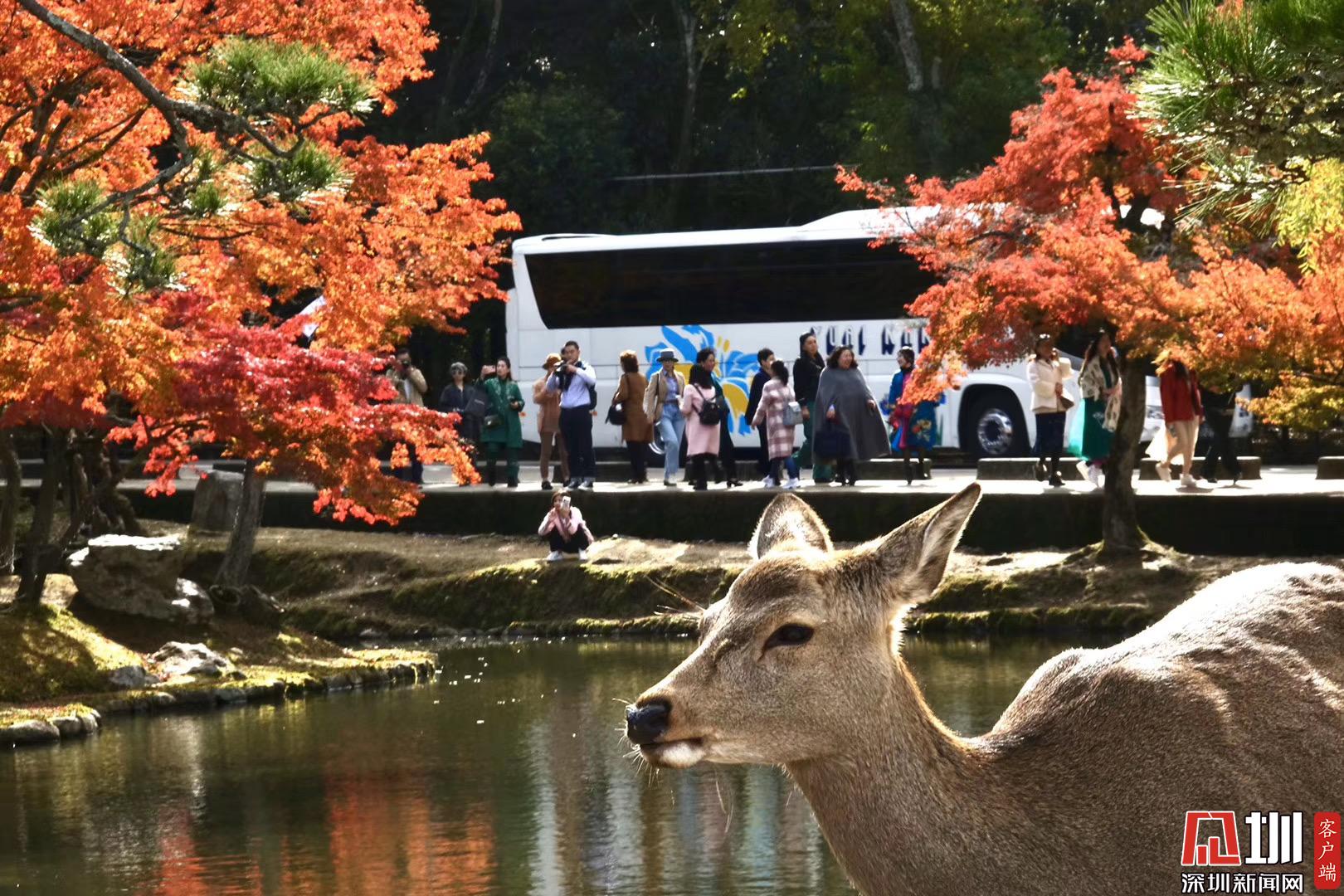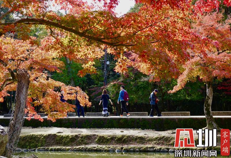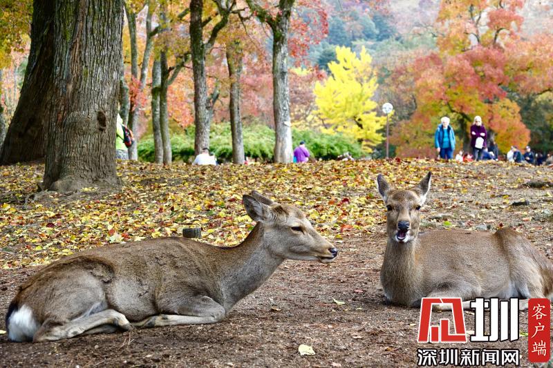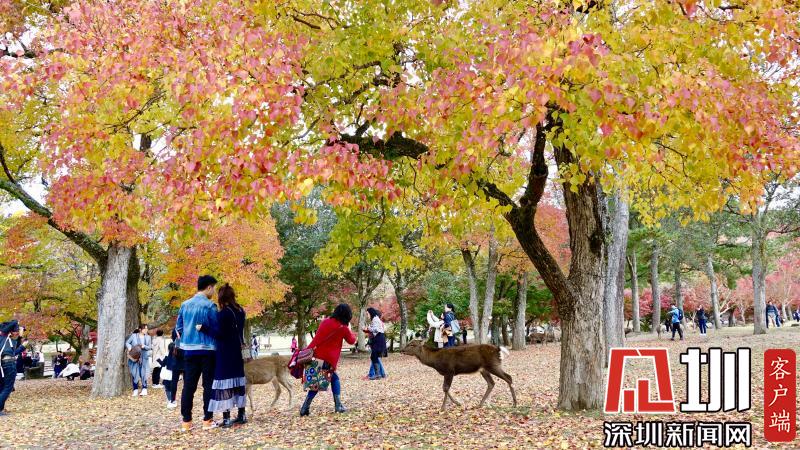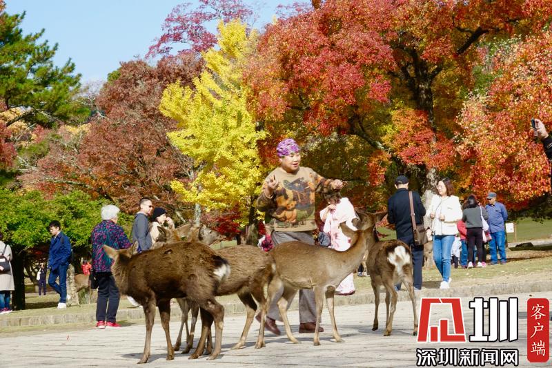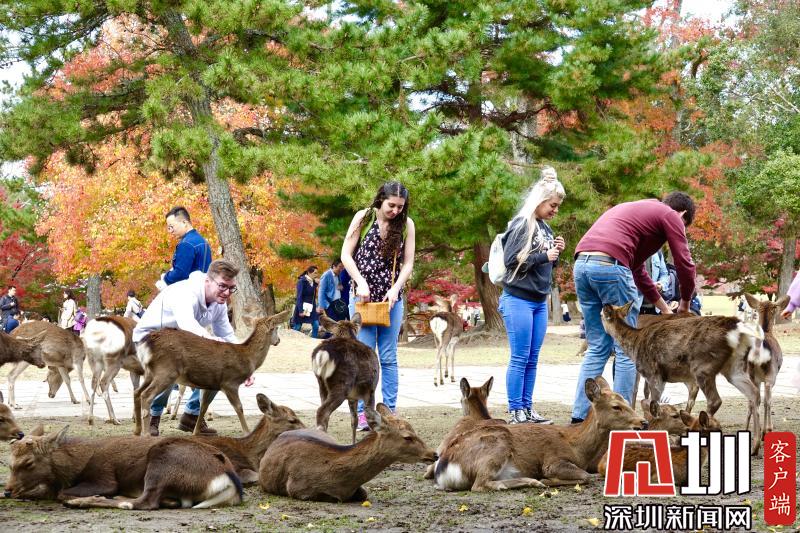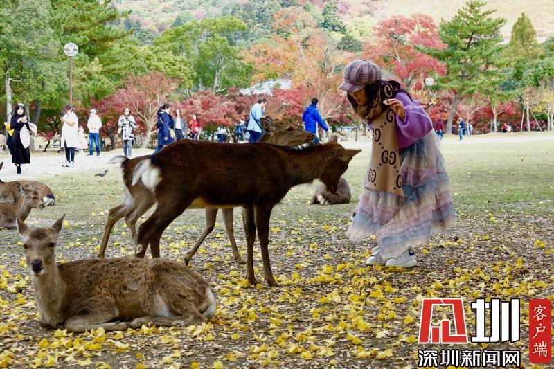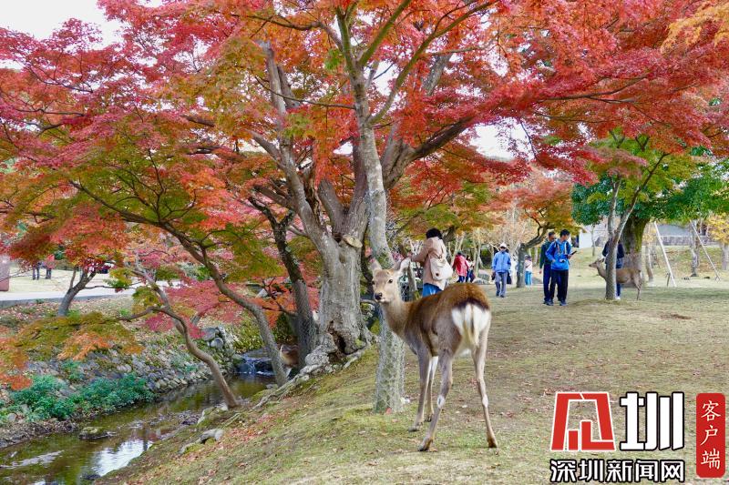 游覽神鹿公園喂飼馴鹿,是奈良觀光的象征性選擇。這里一年四季都游人如織,秋日紅葉映襯下的景觀更是情趣盎然。李仁奇攝