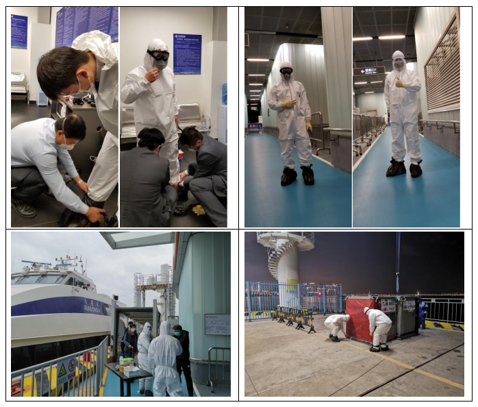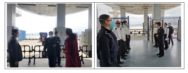 港口各級(jí)干部員工勇于擔(dān)當(dāng)、迎難而上,勠力同心、眾志成城,共同筑牢嚴(yán)防疫情輸入的堅(jiān)強(qiáng)防線(xiàn),用實(shí)際行動(dòng)詮釋了“牢記使命勇?lián)?dāng)”。蛇口郵輪母港呂如福常務(wù)副總經(jīng)理與港口運(yùn)營(yíng)中心林麗華總經(jīng)理連夜開(kāi)會(huì)部署至深夜,第二天仍早早趕到現(xiàn)場(chǎng)與聯(lián)檢單位共同查勘旅客動(dòng)線(xiàn);賴(lài)乙??偙O(jiān)接到航班通知后,放棄值班休息第一時(shí)間趕到現(xiàn)場(chǎng)布置各項(xiàng)保障任務(wù),并親自為一線(xiàn)員工穿戴防護(hù)用品;港口一線(xiàn)員工面對(duì)夜間加開(kāi)航班旅客人數(shù)多且有發(fā)燒旅客的情況,毫不退縮、沖鋒在前,順利完成保障任務(wù),一直到深夜客船和旅客動(dòng)線(xiàn)消毒清場(chǎng)完畢才下班。