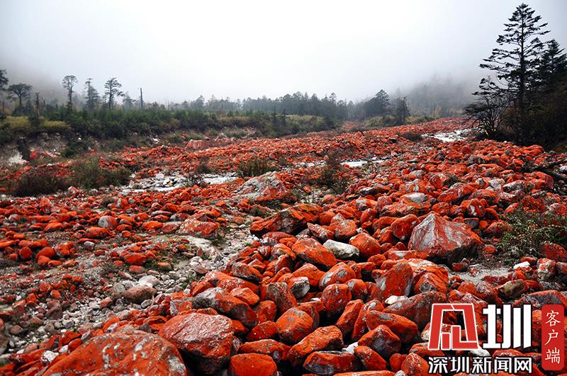紅石對(duì)生長(zhǎng)環(huán)境的要求極為苛刻,空氣潔凈度、濕度、水的清潔度都會(huì)影響它們的生長(zhǎng)。雅家梗一代低碳富氧的空氣、冰山融雪的溪流、森林茂密的植被,為紅石的生長(zhǎng)繁衍提供了最理想的環(huán)境。在這里,紅石密布于近百米寬的河谷里,不同的季節(jié),不同的天氣狀況下,幻化出不同的色彩,呈現(xiàn)朝紅夕褚的奇異景觀。