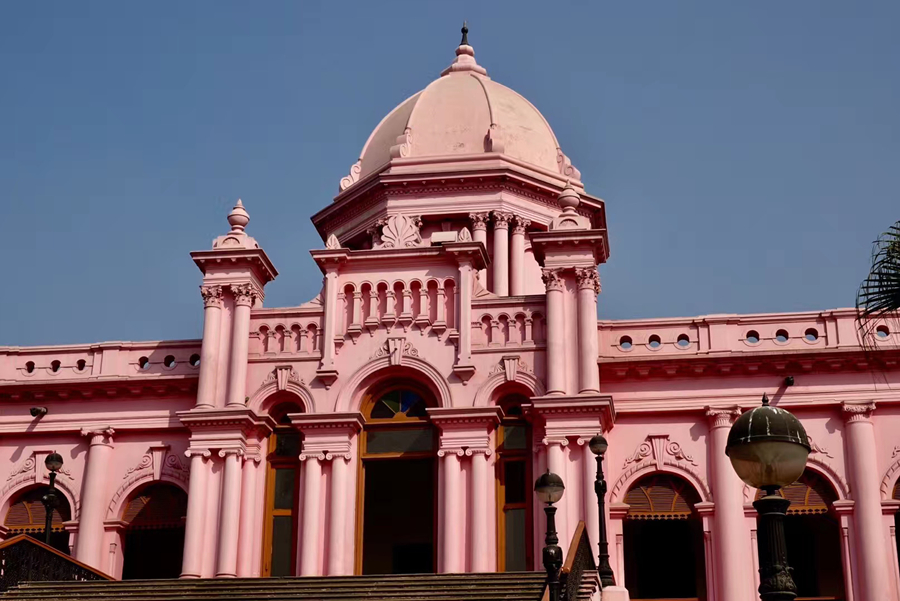這座通體粉赤色的宮廷是游客打卡的地標之一。李仁奇 攝
