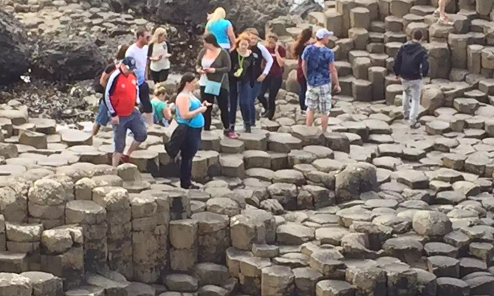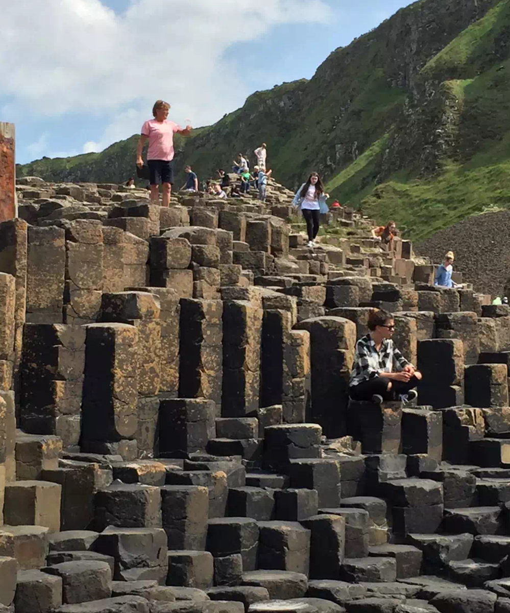 約五千萬(wàn)年前,在今天蘇格蘭西部?jī)?nèi)赫布里底群島一線(xiàn)至北愛(ài)爾蘭東部火山非?;钴S,一股股玄武巖巖熔流從裂隙的地殼中涌出,隨著灼熱的熔巖冷卻收縮,結(jié)晶的時(shí)候,開(kāi)始爆裂呈規(guī)則的六邊形形態(tài)。李仁奇 攝