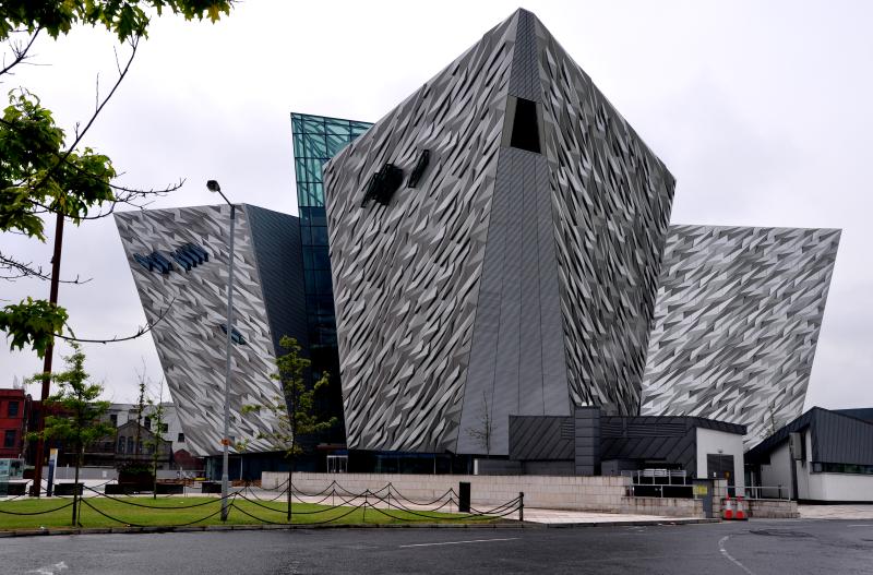 2015年2月3日,在泰坦尼克號沉沒100周年紀(jì)念日之際,一座造型獨特的現(xiàn)代化博物館在原來建造泰坦尼克號的船塢上落成,成為貝爾法斯特的新地標(biāo)。李仁奇 攝