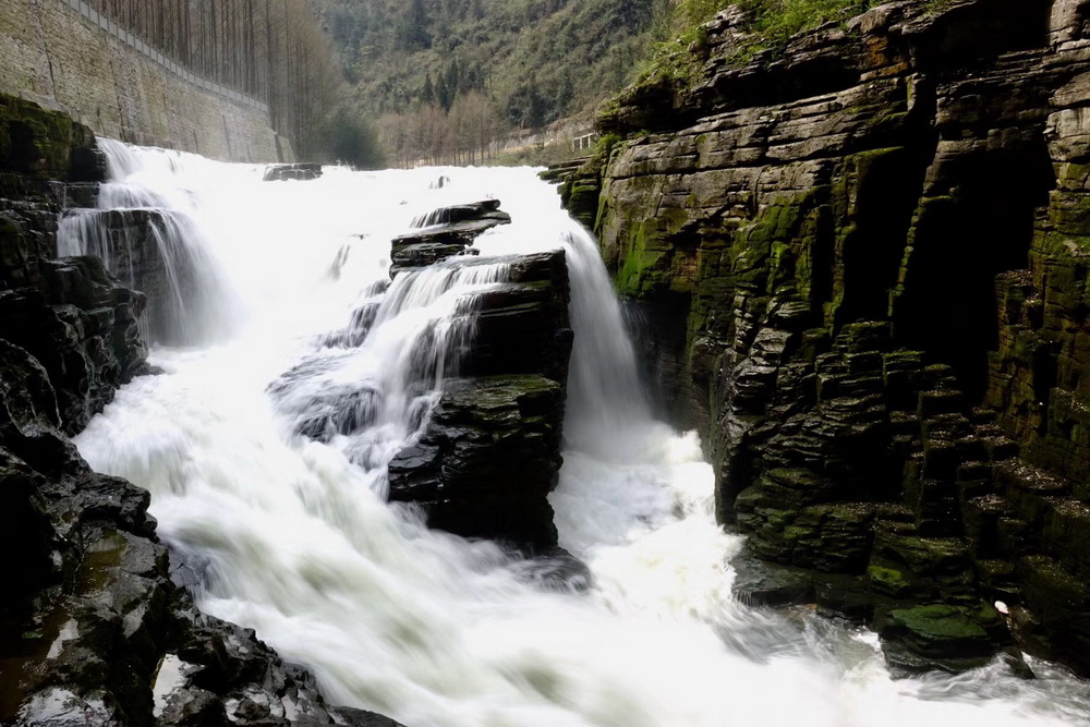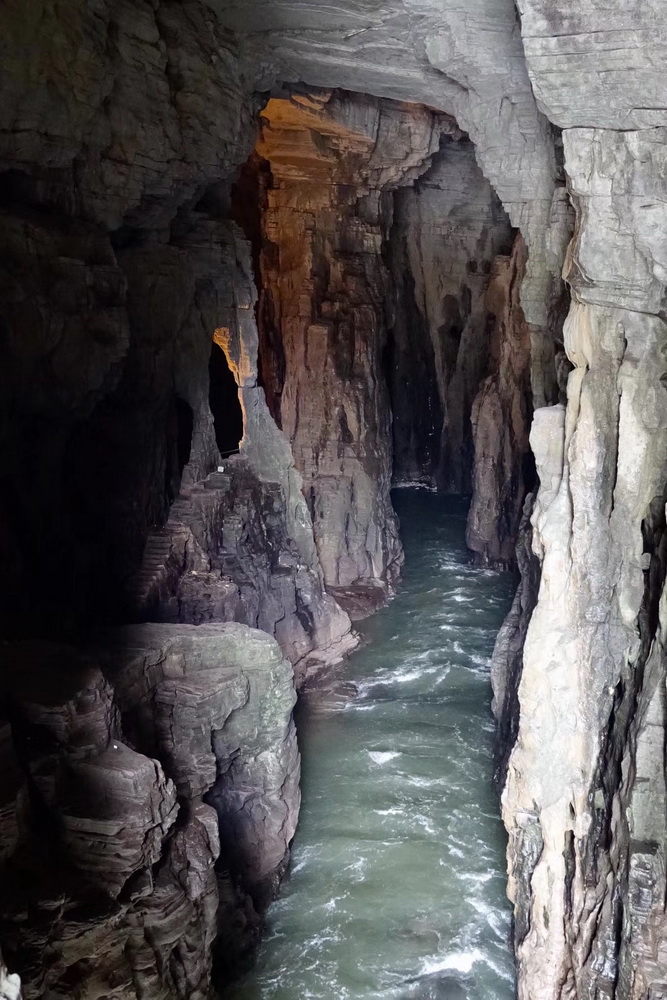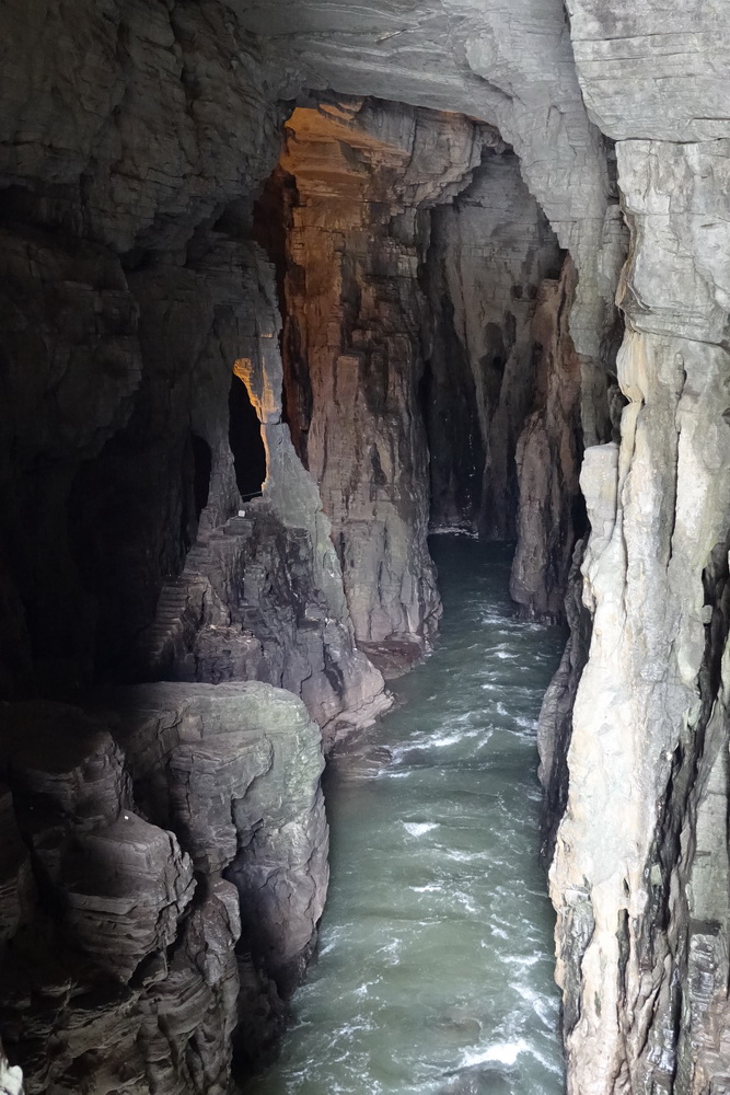 洞中景觀千姿百態(tài),神秘莫測。水洞口的臥龍吞江瀑布落差20余米,吼聲如雷,氣勢(shì)磅礴。李仁奇 攝