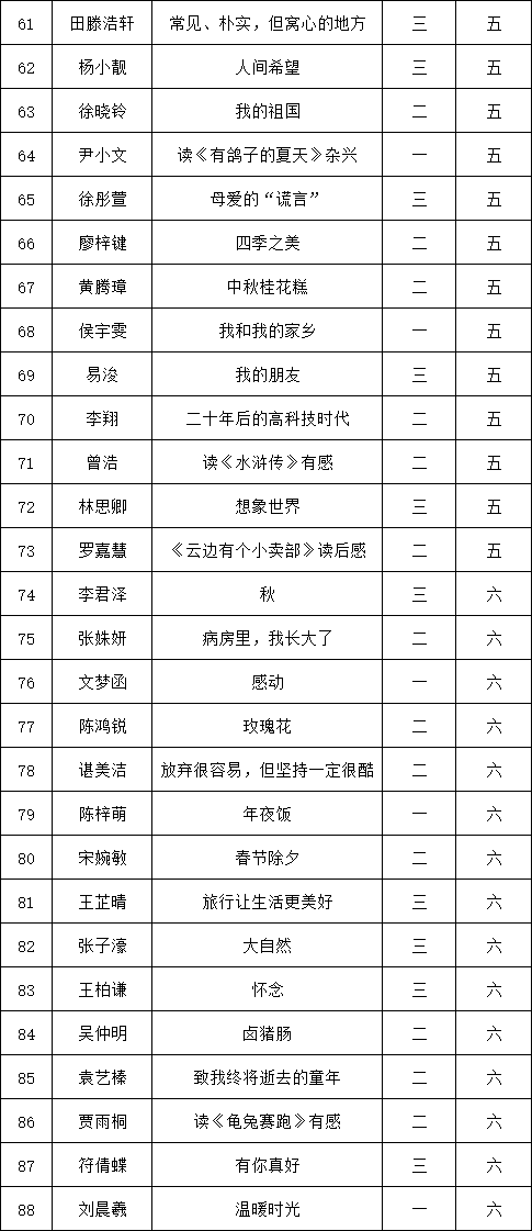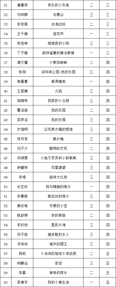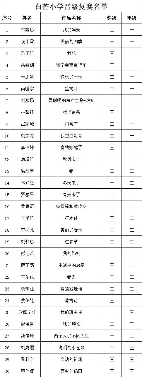 自2021年1月,活動征稿啟動以來,獲得了深圳市廣大中小學生、教師、文學愛好者的熱烈響應積極參與,吸引了深圳百余所學校的上萬人關(guān)注報名?,F(xiàn)公布深圳市南山實驗教育集團白芒小學專場晉級復賽名單如下: