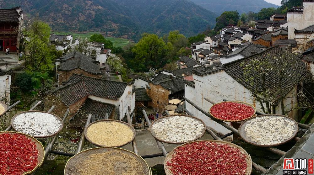 它以春天特意沿山勢(shì)種植的層層油菜花梯田和秋季“家家戶(hù)戶(hù)”晾曬各色農(nóng)產(chǎn)品的“曬秋”特色景觀聞名于全國(guó),成為婺源旅游的打卡景點(diǎn),人氣爆棚。李仁奇 攝