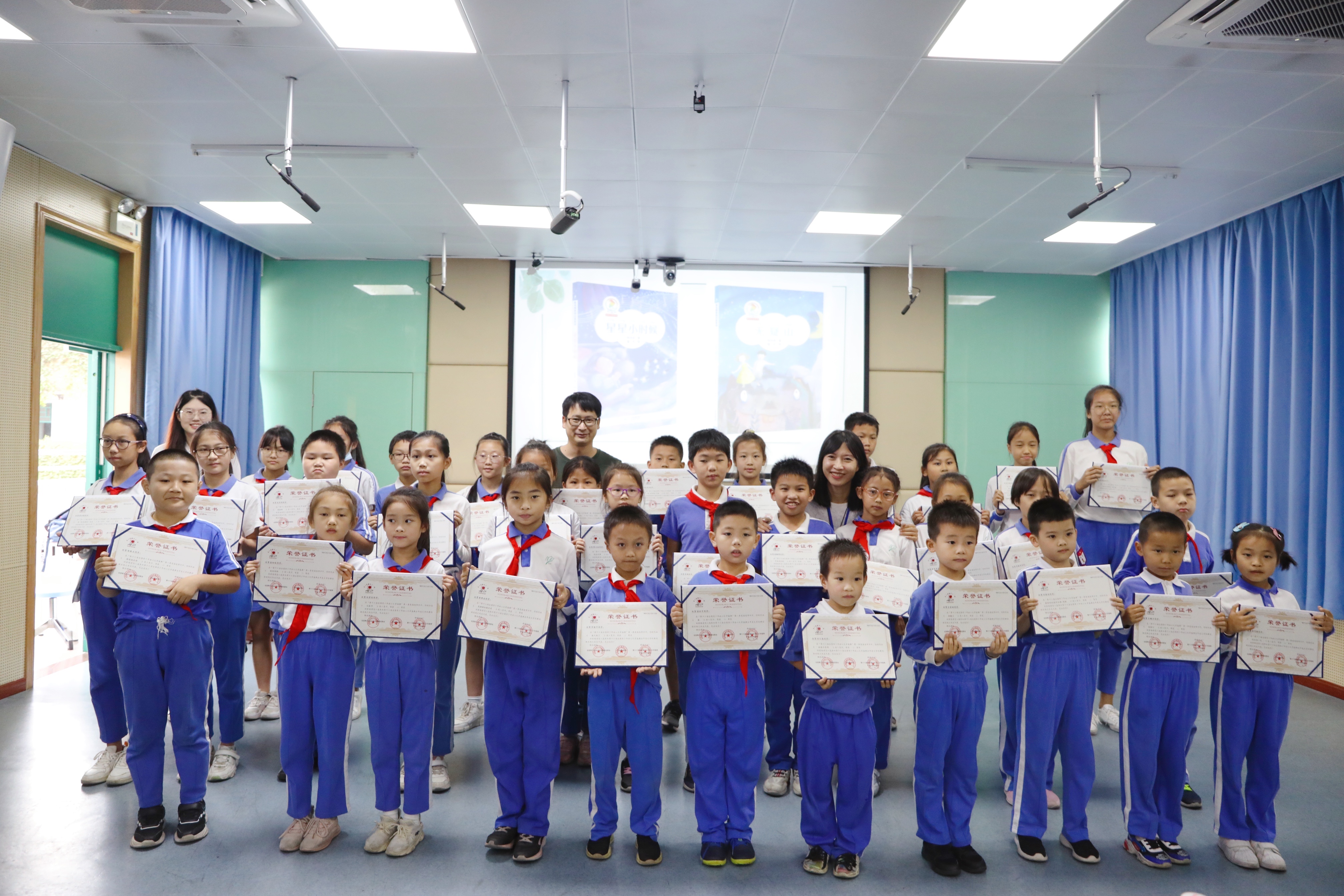 為白芒小學(xué)入選深圳市復(fù)評(píng)的孩子頒獎(jiǎng)并合影