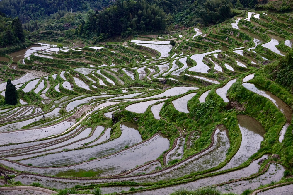 梯田海拔高度200米—1400多米,跨越高山、丘陵、谷地三種地形,最多有700多層。李仁奇 攝