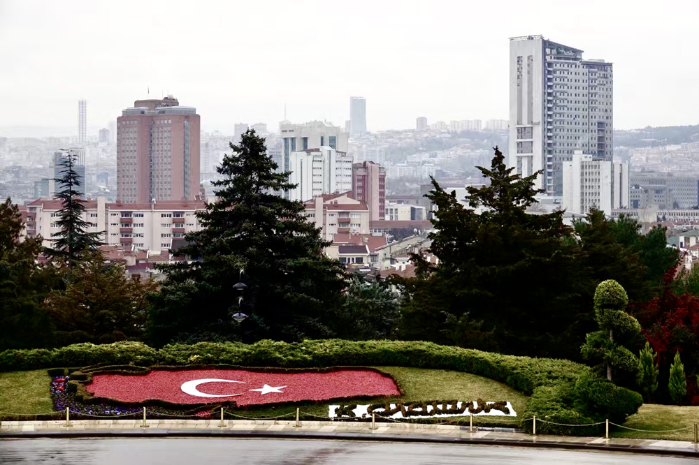 國父紀(jì)念館正門對(duì)面有個(gè)用獻(xiàn)花組成的土耳其國旗花壇。李仁奇 攝