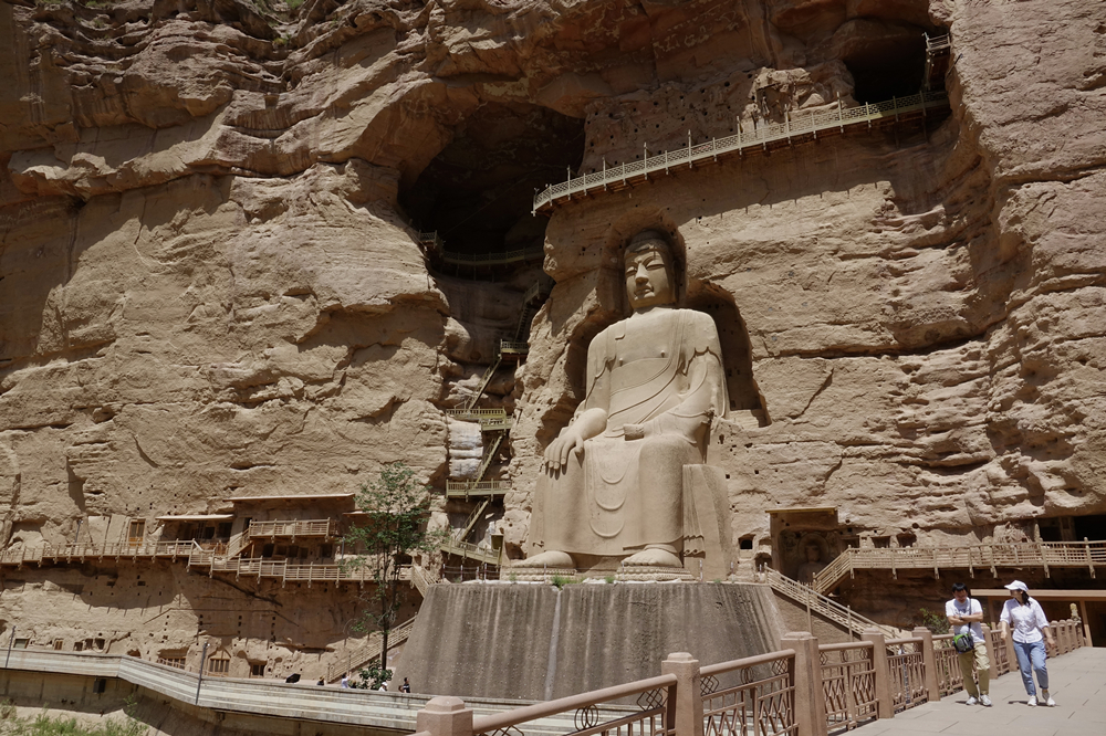 這是炳靈寺石窟最大的一尊彌勒佛大坐像,位于石窟懸崖上,唐代石胎泥塑。依山雕鑿,高達(dá)27米,雄渾莊嚴(yán)。李仁奇 攝