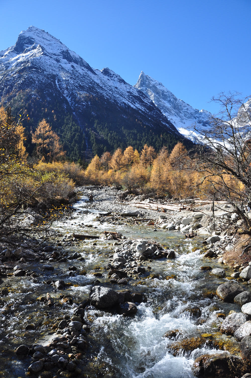 從雪山上流淌下來(lái)的小溪,在雪山和藍(lán)天的映襯下,分外漂亮。李仁奇 攝