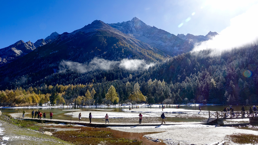 畢棚溝集原生態(tài)景觀博覽、登山穿越、極地探險(xiǎn)、滑雪滑冰、休閑度假于一體,以其優(yōu)美的自然風(fēng)光、完美的自然生態(tài)景觀、優(yōu)良的生態(tài)環(huán)境著稱(chēng)。李仁奇 攝