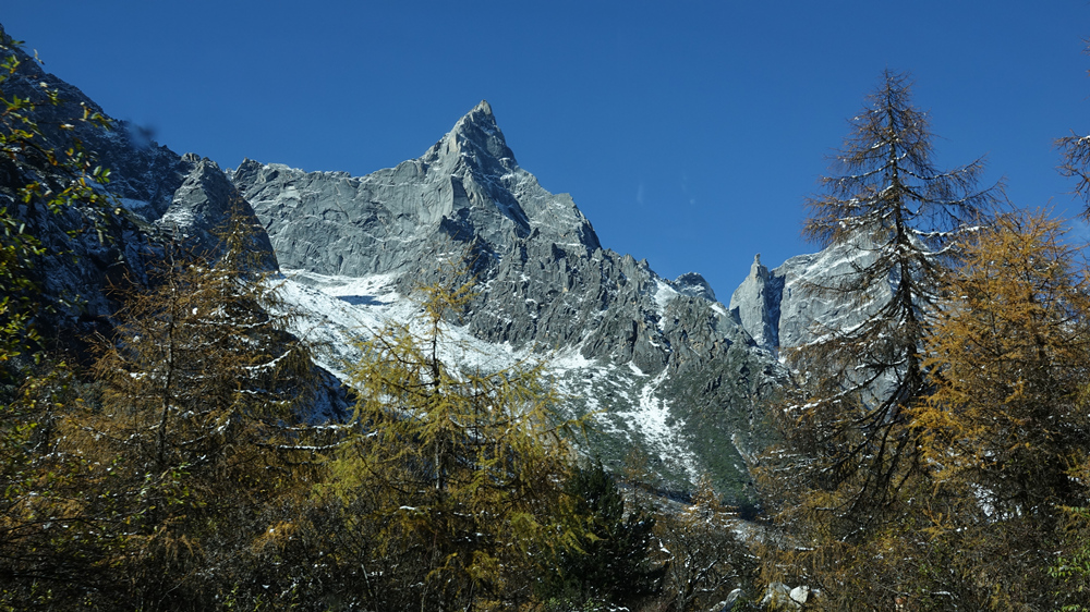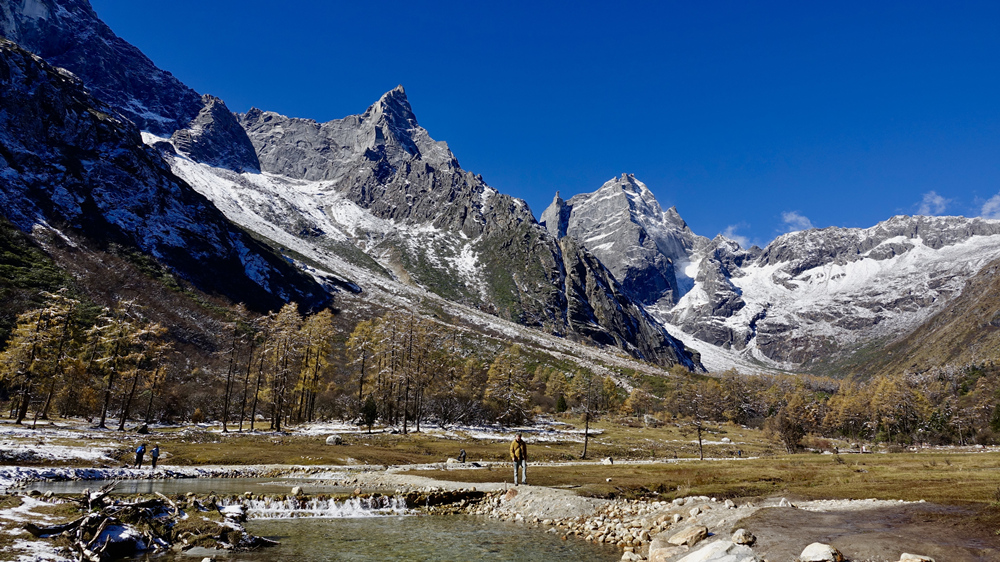 景區(qū)內(nèi)紅葉、杜鵑花種類(lèi)繁多,森林原始、瀑布飛掛、冰川奇特,四季皆有看點(diǎn),尤以深秋時(shí)節(jié)的絢麗多姿聞名,被比作四姑娘山的美麗背影。李仁奇 攝