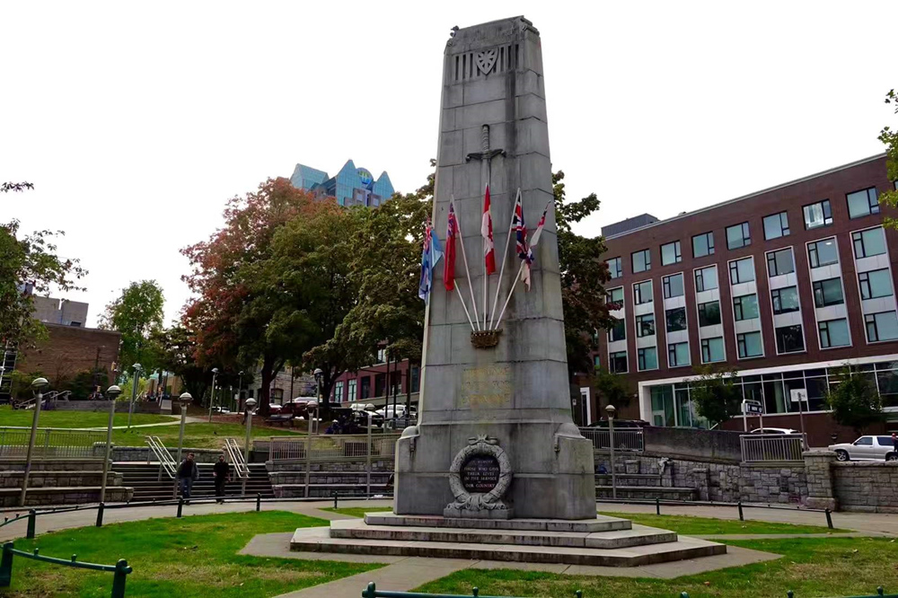 溫哥華勝利廣場中的紀(jì)念碑,紀(jì)念戰(zhàn)爭中犧牲的軍人。李仁奇 攝