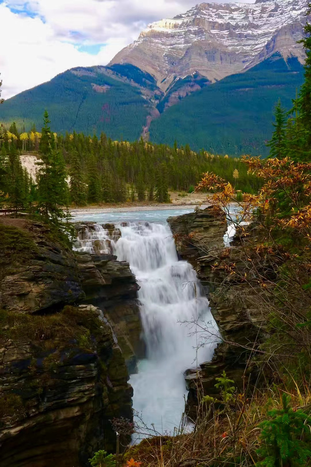 哥倫比亞冰原的融水匯成了阿薩巴斯卡河,由南向北至賈斯珀附近跌落至二三十米的斷崖,形成了這萬(wàn)馬奔騰般的阿薩巴斯卡瀑布。李仁奇 攝
