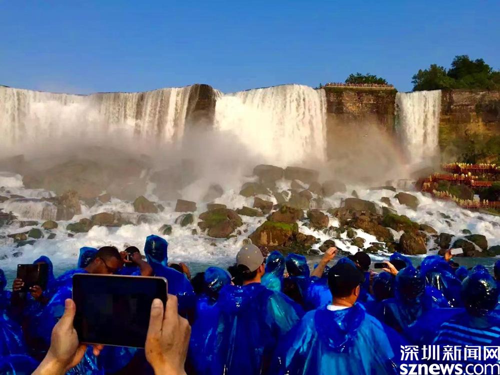 不同的是,在加拿大一側(cè)穿的是紅色雨衣,美國一側(cè)是穿的是藍(lán)色雨衣。李仁奇 攝