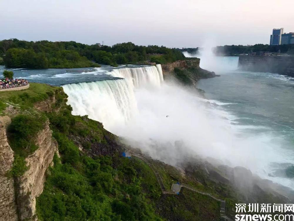 在瀑布兩側(cè),有兩座都叫尼亞加拉瀑布城的姐妹城市,一個隸屬于加拿大的安大略省,另一個隸屬于美國的紐約州,兩城隔河相望。李仁奇 攝
