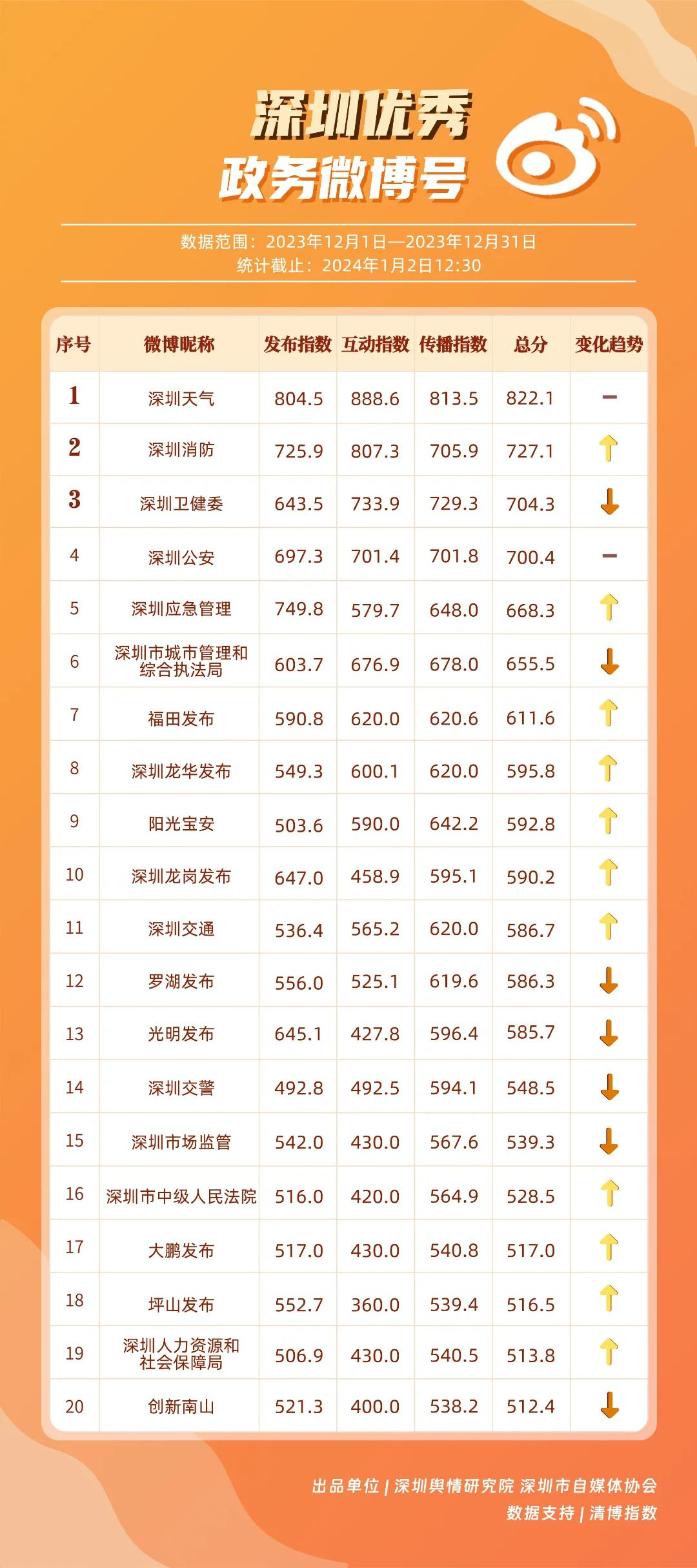 12月深圳優(yōu)秀政務(wù)新媒體矩陣公布!市氣象局、市衛(wèi)生健康委等位列其中