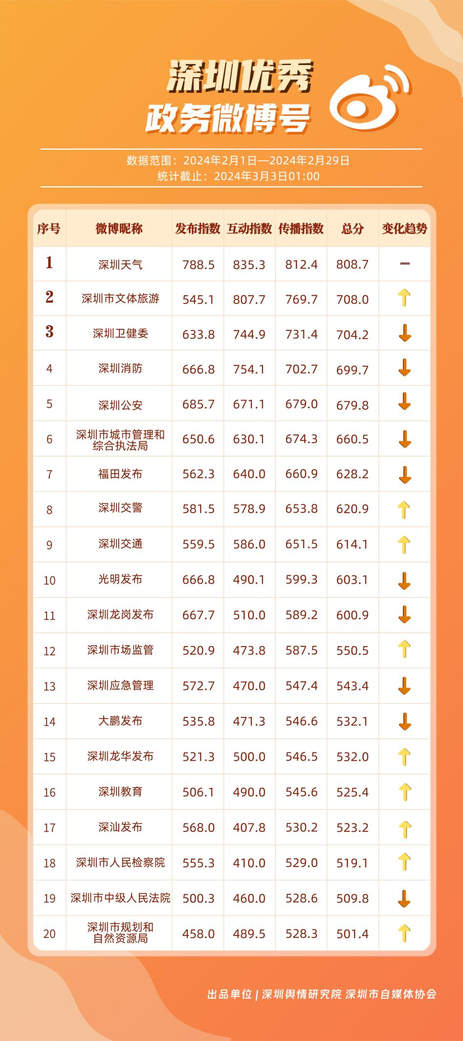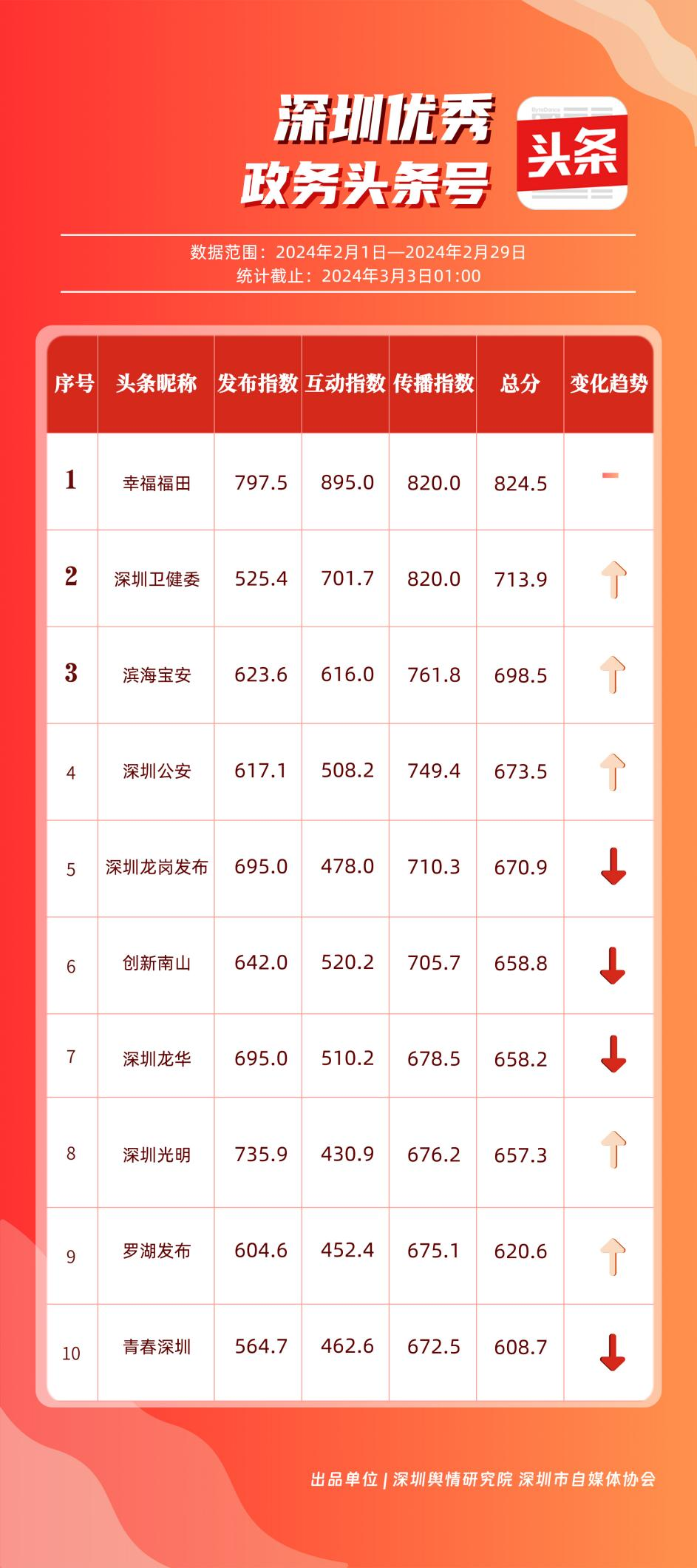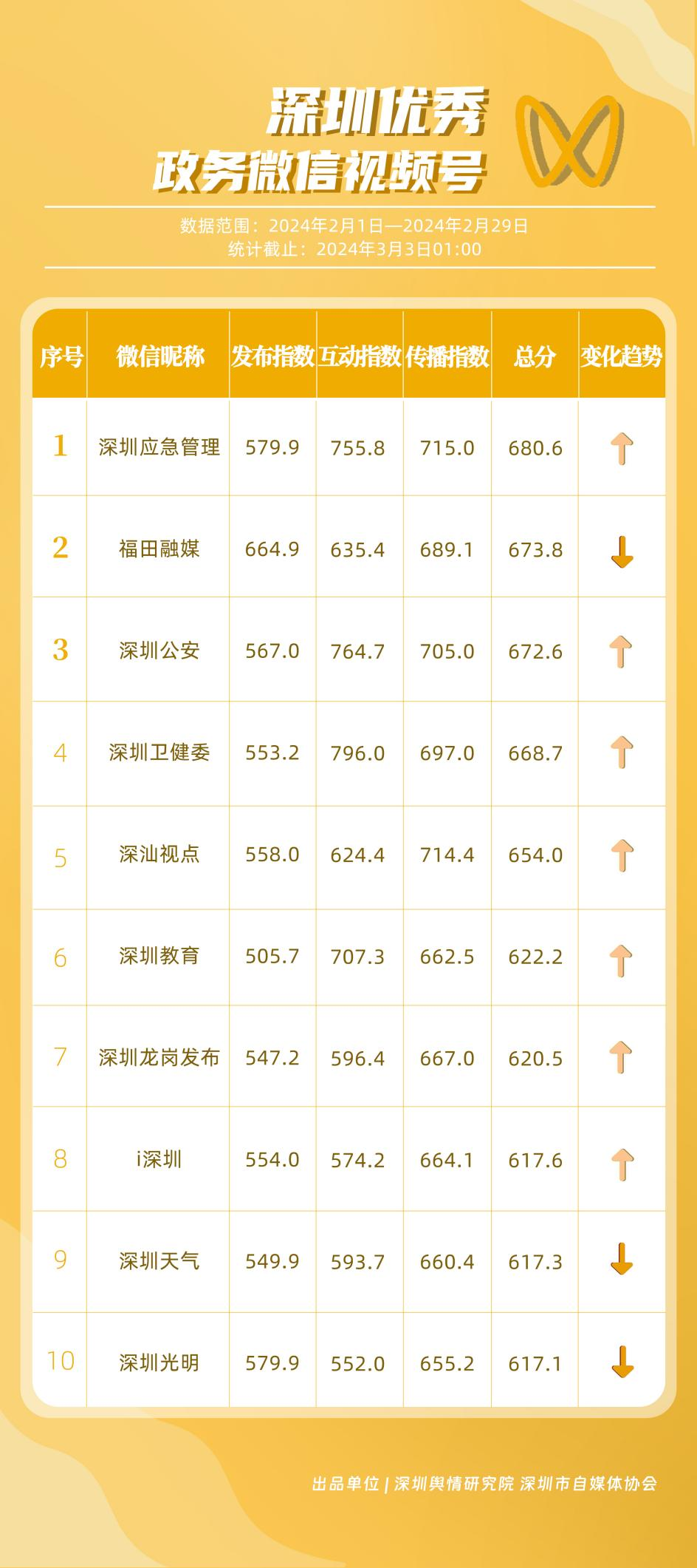 深圳新聞網(wǎng)3月21日訊(記者 陳曉君 實習生 蔡曉婷)3月19日,深圳輿情研究院、深圳市自媒體協(xié)會聯(lián)合發(fā)布《深圳優(yōu)秀政務新媒體矩陣》(2月期),市衛(wèi)生健康委、福田區(qū)、市氣象局、龍華區(qū)、龍崗區(qū)、光明區(qū)、市應急管理局、市公安局、市交通警察局和深汕特別合作區(qū)新媒體矩陣榮獲“深圳優(yōu)秀政務新媒體矩陣”稱號。這些新媒體矩陣主要結(jié)合市民實際需求進行內(nèi)容創(chuàng)作與更新,推動信息傳播質(zhì)效提升。