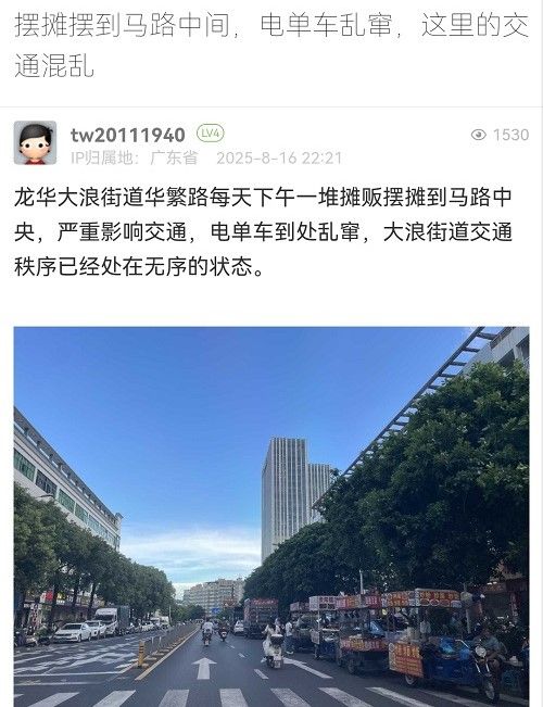 25. 帖文《擺攤擺到馬路中間,電單車亂竄,這里的交通混亂》