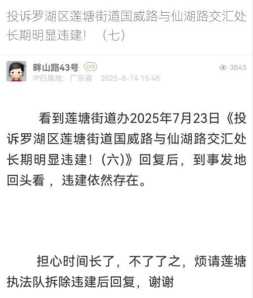 15. 帖文《投訴羅湖區(qū)蓮塘街道畔山路43號(hào)長(zhǎng)期明顯違建?。ㄆ撸?/a>》