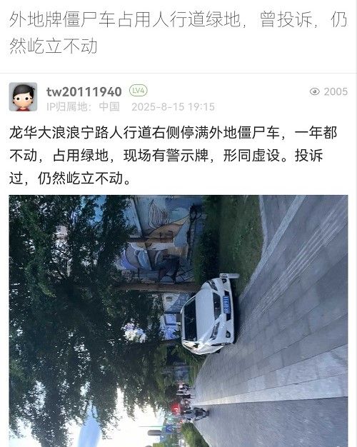 21. 帖文《外地牌僵尸車占用人行道綠地,曾投訴,仍然屹立不動(dòng)》