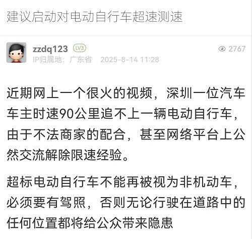 12. 帖文《建議啟動(dòng)對(duì)電動(dòng)自行車超速測(cè)速》