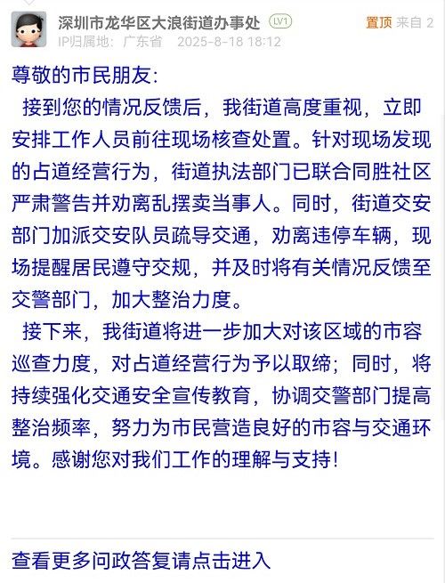 據(jù)統(tǒng)計(jì),2025年8月11日-2025年8月17日,網(wǎng)友在深圳論壇發(fā)布問(wèn)政類帖文共31篇,得到相關(guān)單位正式回應(yīng)的帖文數(shù)為31篇,本期簡(jiǎn)報(bào)回應(yīng)速度最快的單位:市市場(chǎng)監(jiān)督管理局光明監(jiān)管局、福田交通局、龍華區(qū)民治街道辦事處、南山區(qū)南頭街道辦事處、市公安局交通管理局龍崗大隊(duì)、龍崗區(qū)衛(wèi)生健康局、南山區(qū)城市管理和綜合執(zhí)法局、福田區(qū)梅林街道辦事處、羅湖區(qū)蓮塘街道辦事處。