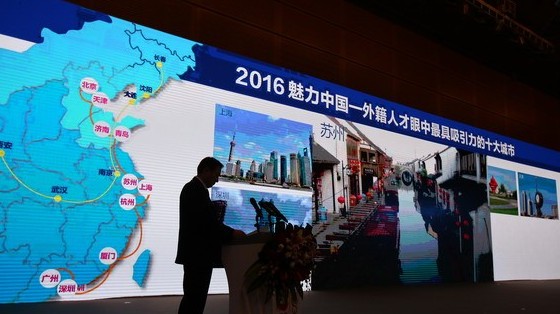 4月15日,在深圳會展中心舉辦的全球才智論壇上,2016年“魅力中國—外籍人才眼中最具吸引力的十大城市”評選結(jié)果揭曉。