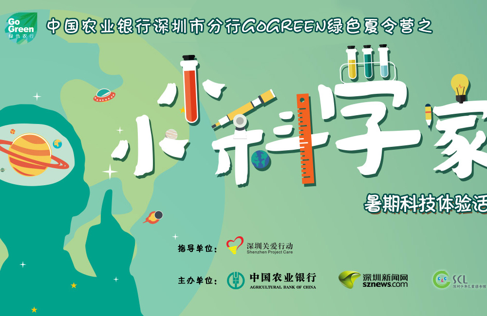 GO GREEN綠色夏令營之“小小科學家”活動由深圳市關愛辦、中國農(nóng)業(yè)銀行深圳市分行、深圳新聞網(wǎng)、深圳市少年兒童圖書館聯(lián)合舉辦。2個小時的活動,讓孩子開動腦筋,跟著老師學習融合物理實驗、化學原理,為一體的十大科學/科技項目。[詳細]