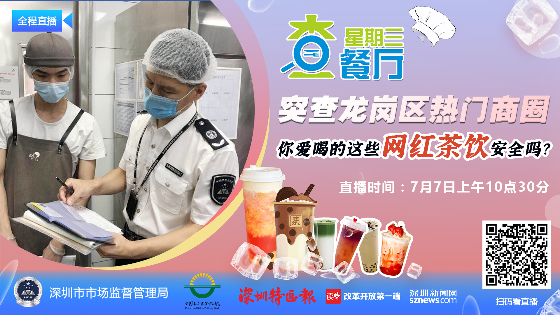 “星期三查餐廳,讓深圳人吃的更放心”。8月2日,有媒體曝光“奈雪的茶”存在食品安全隱患,在社會上引起廣泛關注,同時正值濕米粉中毒事故高發(fā)期,為回應民生熱點,科普食安知識,8月4日,“星期三查餐廳”專項執(zhí)法行動突擊檢查位于鹽田區(qū)大梅沙的“奈雪的茶”飲品店和經營濕粉類餐飲店--海月居海鮮餐廳。